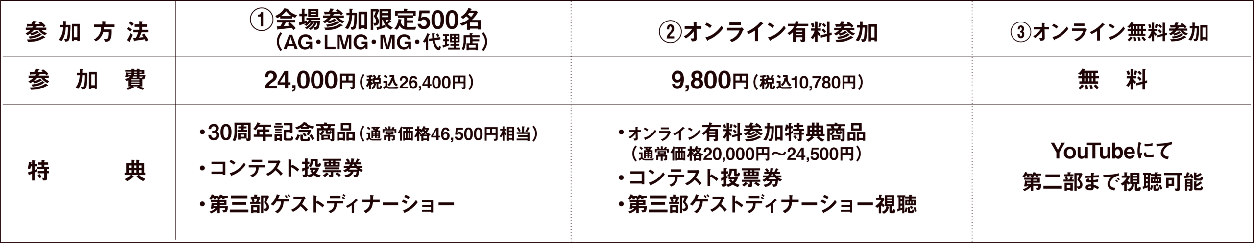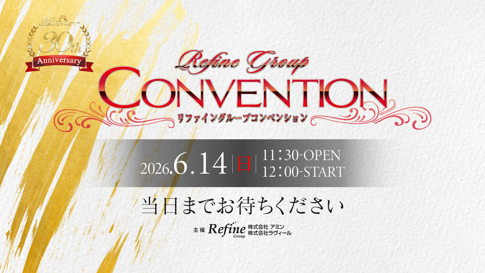 プロローグ 第一部 オープニング グループ概要 講演「夢は叶う」 Special Guest 講師 小西 博之 シンデレラストーリー ビューティコンテストPart1サプライズタイムビューティコンテストPart2 第二部 サクセスストーリー 昇格者紹介 コンテスト表彰式 オンラインCMタイム ※オンライン配信のみ 第三部 (有料参加者のみZoomにて視聴可能) ディナーショー ダブルネームによるスペシャルゲストショーファーストステージ優秀者表彰 ※オンラインでの配信はプログラムが異なります。※プログラムは予告なく変更になる場合があります。 有料オンライン参加をしていただいた方に、様々な特典をご用意しております。コンベンションを余すところなく楽しんでいただくための、豪華な内容になっておりますのでぜひこの機会をお見逃しなく。(申込には期限があります) 有料オンライン参加をしていただいた方に、様々な特典をご用意しております。コンベンションを余すところなく楽しんでいただくための、豪華な内容になっておりますのでぜひこの機会をお見逃しなく。(申込には期限があります) 会場参加者特典 オンライン有料参加者特典 ビューティコンテスト投票券付 全国のリファイングループのメンバー様を対象に、美しさ・健康・夢を披露する舞台。投票を通して、あなたもシンデレラストーリーに参加してみませんか。 ※コンテスト投票券及び特典商品は6月初旬以降順次発送させていただきます。 第三部スペシャルゲストショー視聴 サザンオールスターズ最強トリビュートバンド KAWAMURA BAND サザンオールスターズ、桑田佳祐をこよなく愛する河村和範が1990年に福岡にて結成。2011年、日本テレビ「世界1のSHOW TIME~ギャラを決めるのはあなた~」への出演をきっかけに「行列のできる法律相談所」「ヒルナンデス」「ものまねウォーズ」「知っとこ!」「なりきりバンド選手権」「水曜日のダウンタウン」など次々と全国ネットのテレビ番組に出演し、一気にその名が全国に知れ渡る。ボーカル河村和範の歌唱力のみならず、メンバーの演奏力、ステージ構成・演出にいたるまでこだわりぬいた内容は、ただの“モノマネバンド”の領域をはるかに超えるとファンにも関係者にも驚きと感動を与え、今やサザンオールスターズ最強トリビュートバンドとして福岡を拠点に全国各地で活動。 参加申込締切日 会場参加:2026年5月8日(金)オンライン有料参加:2026年5月20日(水) YouTube へ URLをコピー コンベンション当日は、当ページへのアクセス集中が予想されます。予めコンベンションLIVE配信動画をYouTube上で「後で見るリスト」に保存しておくか、動画のURLをコピーして保存していただくことを推奨いたします。また、コンベンションLIVE配信動画はYouTubeアプリ内やWebサイトより検索いただいてもヒットしませんのでご注意ください。 オンライン配信ご視聴の際は、家庭用インターネット回線、Wi-Fi、スマートフォン本体の通信回線をご用意ください。 ※通信容量制限や速度制限がある契約プランの場合は、ご利用状況によって遅延等が発生する場合がありますのでご注意ください。受信環境にて通信障害が生じ、視聴及び投票ができない場合においての責任は負いかねますことをご了承ください。 ご視聴には端末(パソコン、タブレット、スマートフォン)をご用意ください。 地域によって台風(暴風・豪雨・洪水・高潮)等や、豪雪・地震・津波・噴火等の異常な自然災害等が発生した場合の視聴不可においても上記に準じ、後日投票や再配信は行いません。 コンテスト投票券の譲渡、及び有料参加者特典の転売は固くお断りいたします。 コンベンションの映像、画像及び音声全てにおいて録音・録画・スクリーンショットを固く禁じます。 ©2026 株式会社アミン